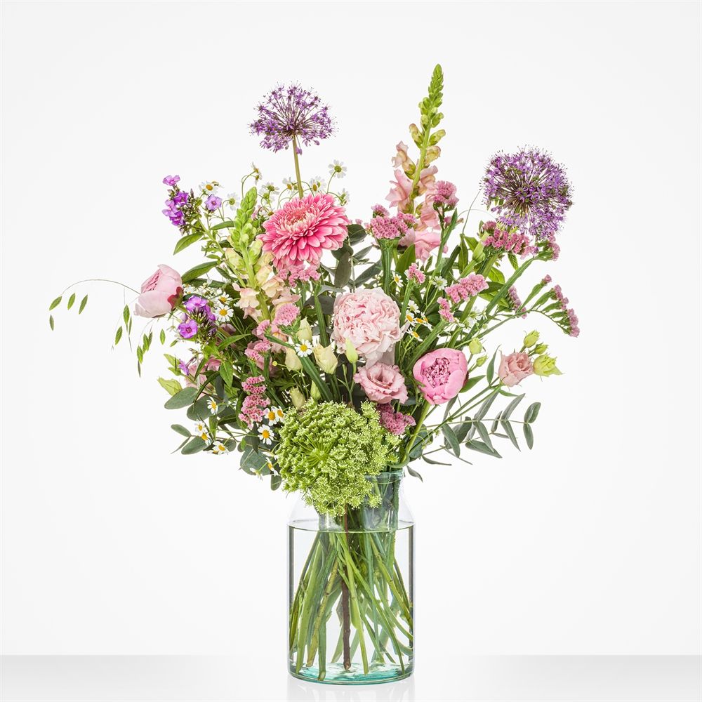 Ontdek de charme van ons boeket ‘Seizoenspracht’, een speelse en verrassende samenstelling met dé bloem van het seizoen: de pioenroos. Dit boeket straalt warmte uit dankzij de zachte pasteltinten en is samengesteld uit zorgvuldig geselecteerde bloemen die