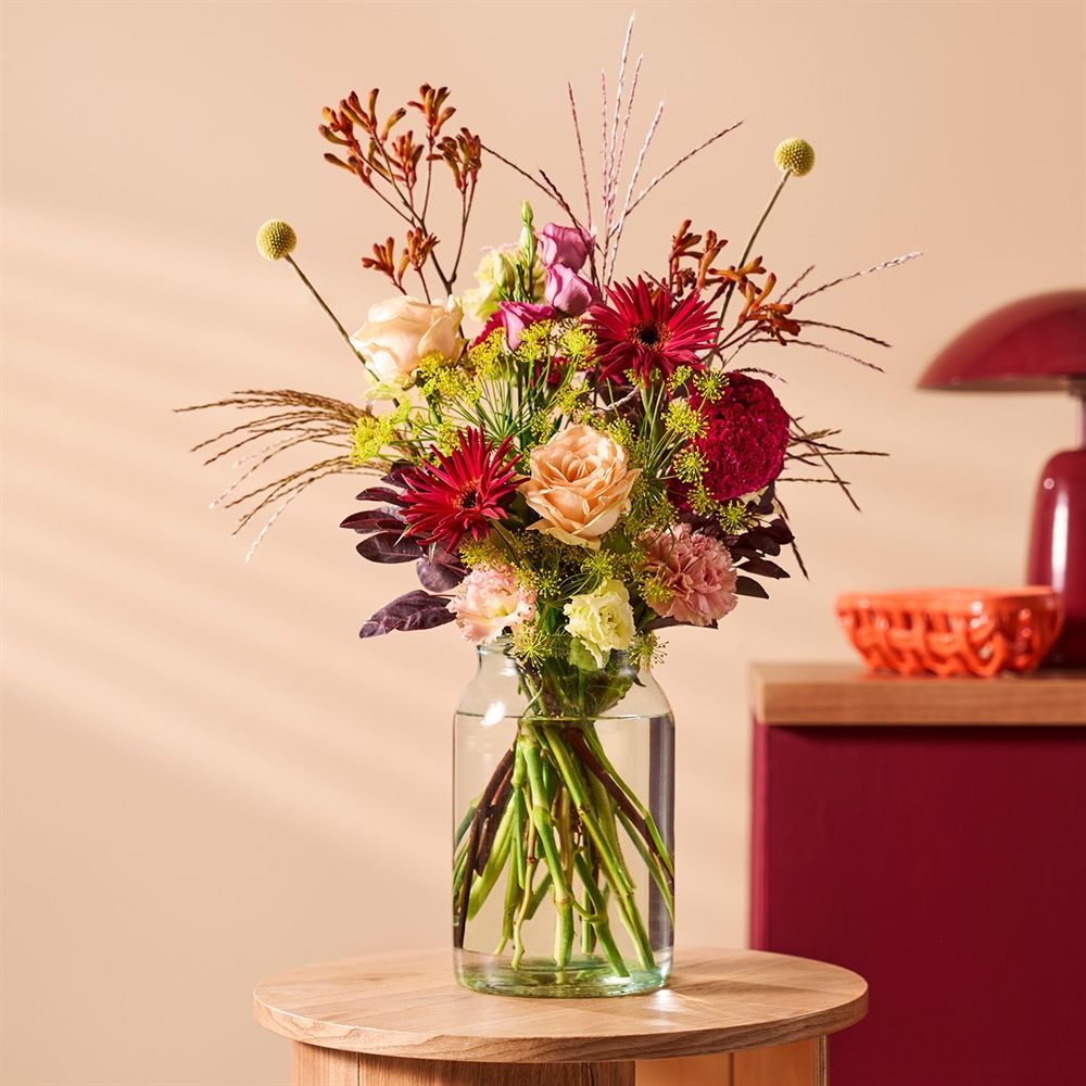 Ontdek de prachtige herfstkleuren in dit warme seizoensboeket, zorgvuldig samengesteld door onze lokale vakbloemist. Met de meest verse bloemen breng je de herfstliefde in huis. Een perfect cadeau om te geven en te ontvangen. Maak de ervaring compleet door onze bijpassende vaas toe te voegen of kies voor onze heerlijke chocolaatjes en luxe bonbons. Houd er rekening mee dat het geleverde boeket kan afwijken van de afbeelding doordat bloemen natuurlijke producten zijn.