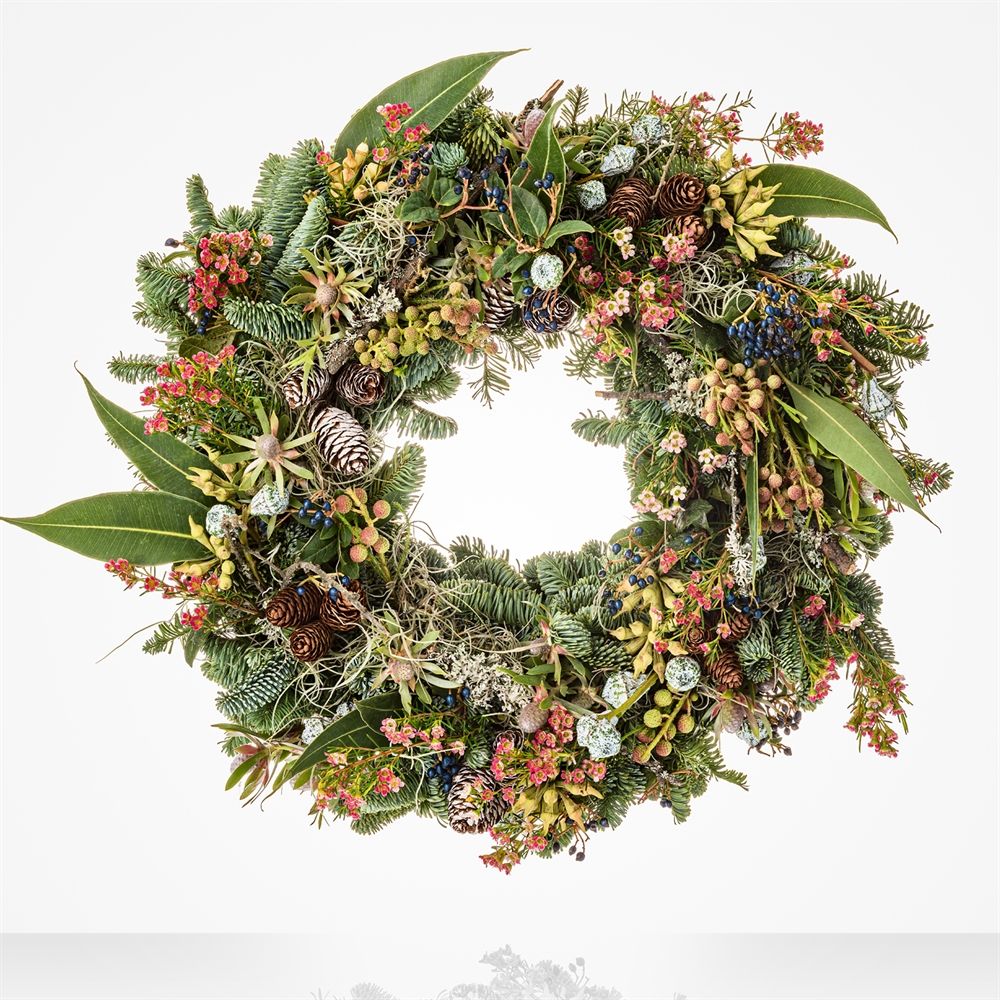 Verspreid een eindeloos gevoel van feest en warmte met deze luxe kerstkrans. Een lust voor het oog en een oogverblindende aanvulling voor op tafel of aan de voordeur. Krans ca. 40cm. Het geleverde boeket wijkt af van de foto aangezien bloemen natuurproducten zijn.