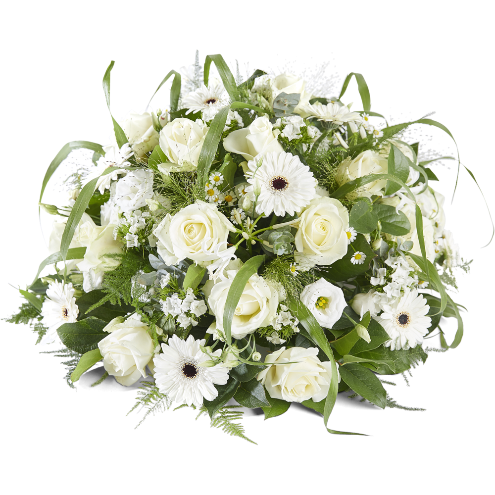 Het Biedermeier rouwstuk 'Bescheiden' is een compact en tijdloos arrangement van bloemen. Dit ronde rouwstuk is zorgvuldig samengesteld voor een optimale zichtbaarheid vanuit alle hoeken. De 'Bescheiden' Biedermeier is vervaardigd met diverse witte bloemen en straalt een klassieke en tijdloze elegantie uit, waardoor het perfect geschikt is voor elke uitvaart. Je kunt kiezen uit afmetingen van 40cm, 50cm of 60cm. Het is goed om te weten dat elke bestelling van rouwbloemstukken persoonlijk en handmatig wordt gecontroleerd om te waarborgen dat het arrangement volledig aan jouw wensen voldoet. De levering van de rouwbloemen kan plaatsvinden op een locatie naar keuze, zoals een kerk, rouwcentrum of crematorium. Het is niet nodig om het rouwstuk zelf op te halen, aangezien de bloemist ervoor zal zorgen dat het rouwboeket op het juiste moment wordt bezorgd en de bloemen op hun mooist zijn. Een geruststellende gedachte in deze moeilijke tijd.
