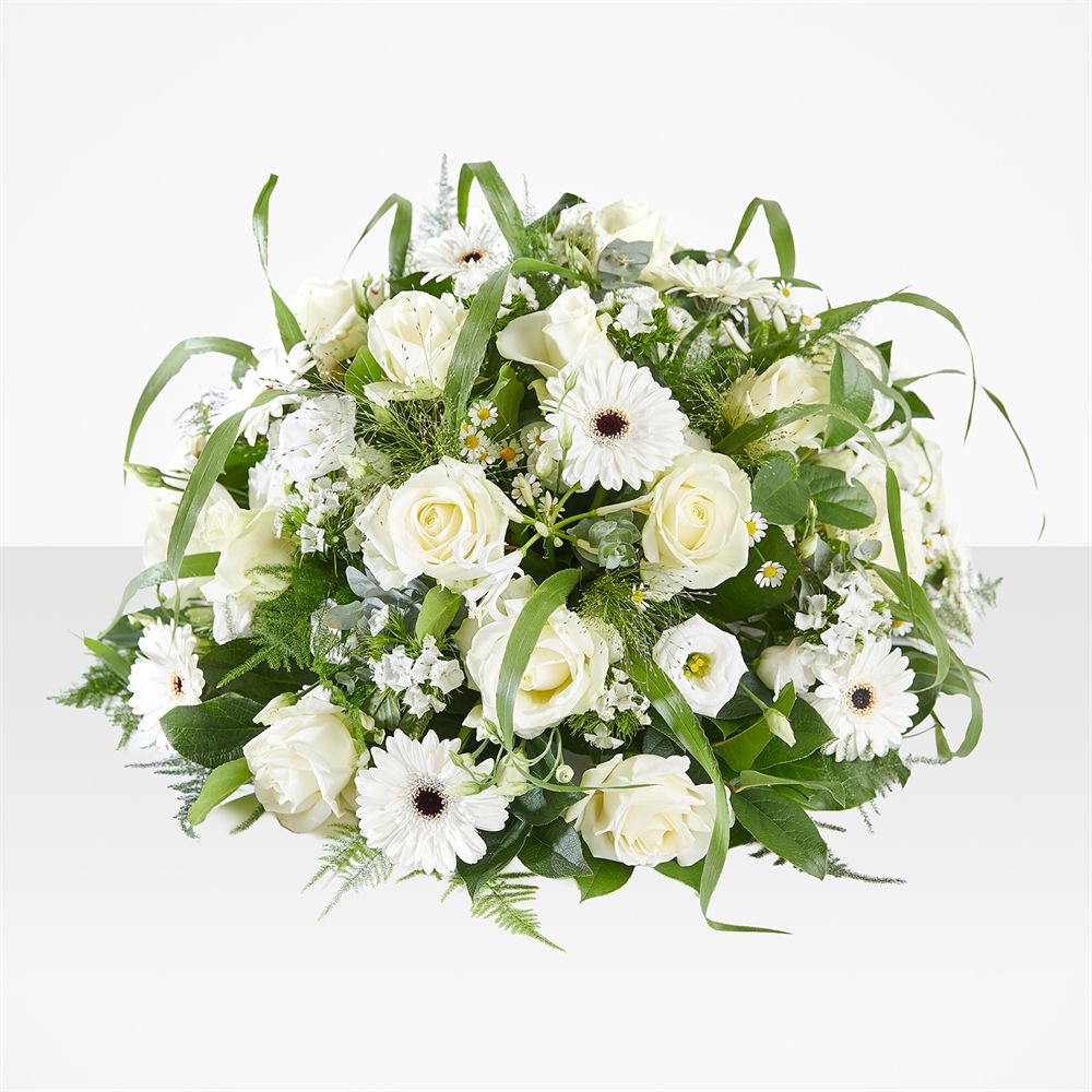 Rouwstuk Bescheiden met tijdloze witte bloemen voor elk afscheid. Onze handmatig samengestelde biedermeier wordt persoonlijk gecontroleerd en op locatie bezorgd. Laat de rouwboeketten zorgeloos leveren en straal troost uit in deze moeilijke tijd.