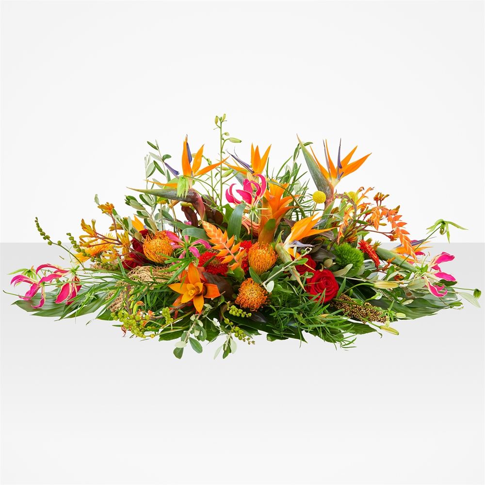 Een warm eerbetoon met het Exotische Tuin rouwstuk. De prachtige ovale vorm en de levendige kleuren geven een persoonlijke touch aan het afscheid. Kies uit 60cm, 80cm of 100cm. Met zorg samengesteld met bloemen die het hele jaar door stralen. Bestellingen met rouwbloemen worden met zorg gecontroleerd en op de gewenste locatie bezorgd voor een vlekkeloze service. Maak een moeilijke tijd iets makkelijker met dit liefdevolle gebaar.