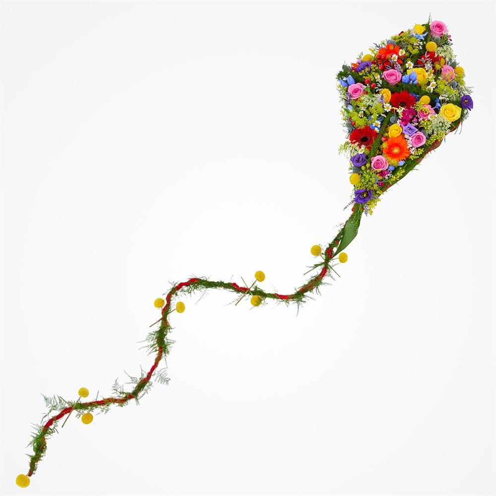 Het rouwstuk In de lucht is een bloemstuk in de vorm van een vlieger. In de lucht maakt deel uit van het thema 'Onze sterren' binnen het rouwwerk. Onze sterren verdienen het om gezien te worden en voor altijd te blijven stralen. In dit thema vind je speciale vormen die betekenisvol kunnen zijn. De speciale vliegervorm van In de lucht bevat kleurrijke bloemen en heeft een formaat van ongeveer 25cm bij 60cm. Fijn om te weten: iedere bestelling met rouwwerk wordt door onze klantenservice medewerkers persoonlijk en handmatig gecontroleerd. Hiermee garanderen wij dat het rouwstuk volledig naar wens wordt samengesteld. Onze bloemisten bezorgen de rouwbloemen op een locatie naar keuze (bij een kerk, rouwcentrum of crematorium). Je hoeft het rouwstuk niet zelf op te halen bij de bloemist. Onze Fleurop bloemisten zorgen ervoor dat het rouwboeket op het juiste moment wordt bezorgd en dat de bloemen op hun mooist zijn. Een extra fijne gedachte in een verdrietige periode.