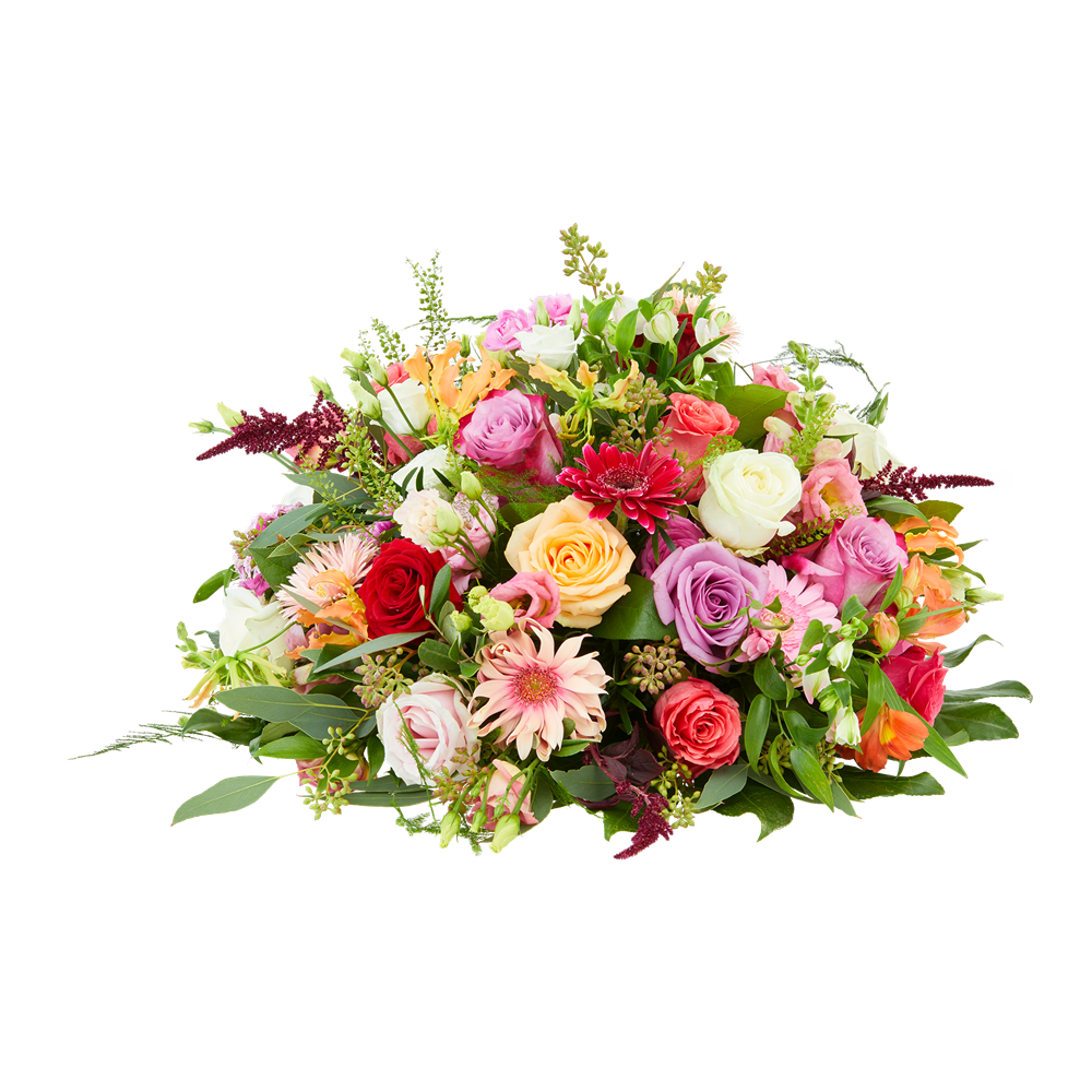 Het prachtige en kleurrijke biedermeier rouwstuk "Laatste kus" met warme rozen en roze tinten kenmerkt zich door zijn ronde vorm. Dit bloemstuk staat bekend als Biedermeier en biedt een goed zicht op de bloemen vanuit verschillende hoeken. Het rouwstuk "Laatste kus" is verkrijgbaar in drie maten: 40cm (klein), 50cm (middel) en 60cm (groot). Bestellingen met rouwwerk worden zorgvuldig en handmatig gecontroleerd, zodat het rouwstuk perfect naar wens wordt samengesteld. De rouwbloemen kunnen worden bezorgd op elke gewenste locatie, zoals een kerk, rouwcentrum of crematorium. Je hoeft het rouwstuk niet zelf op te halen, de bloemist zorgt voor een tijdige bezorging en de bloemen worden met zorg behandeld voor een optimaal resultaat. Een geruststellende gedachte in een moeilijke tijd.
