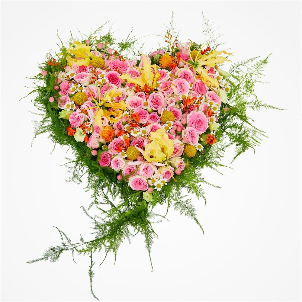 Het prachtige rouwstuk Rozengeur symboliseert liefde en kleur. Met warme rozen en roze tinten in een hartvorm, straalt dit bloemstuk romantiek uit. Beschikbaar in 35cm, 45cm of 60cm voor een persoonlijke touch. Onze toegewijde klantenservice controleert elke rouwbestelling handmatig, zodat het perfect aansluit bij je wensen. Laat onze ervaren bloemisten de rouwbloemen leveren op elke gewenste locatie, van kerk tot crematorium. Geniet zonder zorgen, laat ons zorgen voor een tijdige bezorging en prachtige bloemen. Een troostende gedachte in moeilijke tijden.