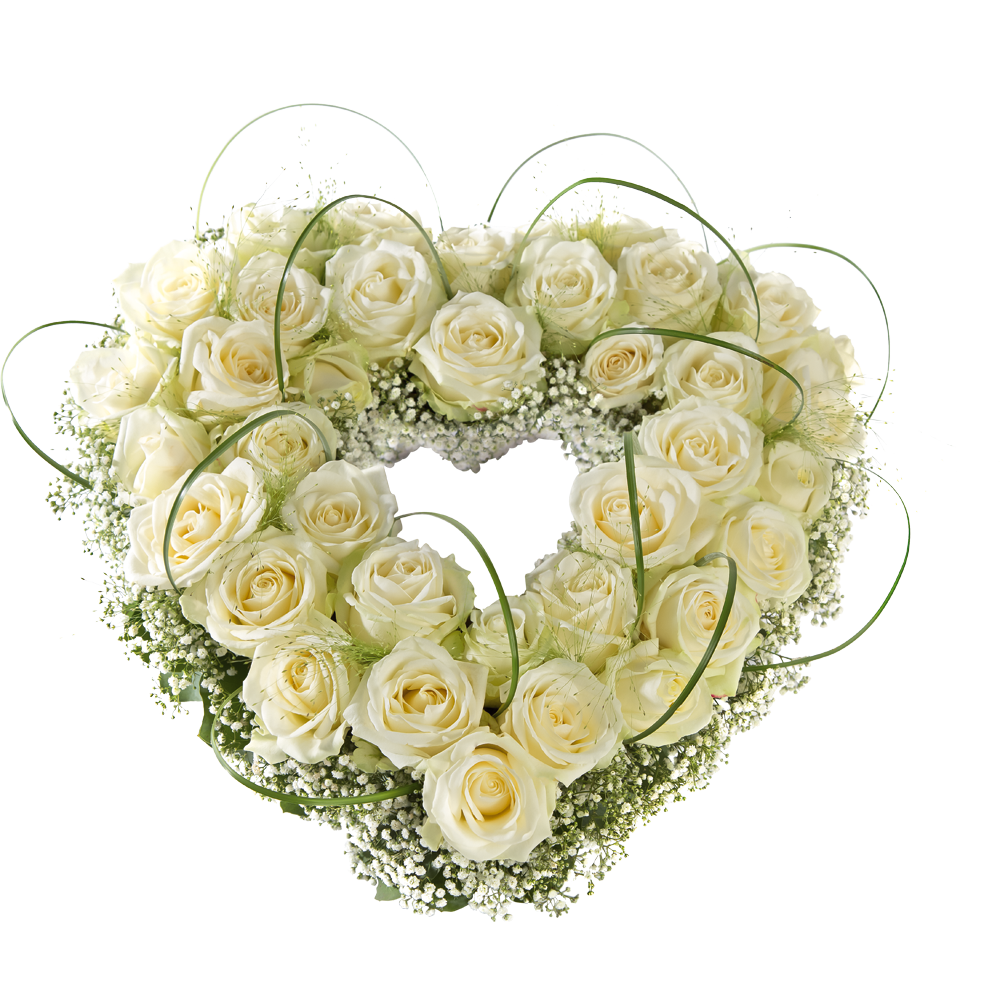 Rozen, gipskruid en berengras omringen deze hartvorm waarvan het midden wordt vrijgelaten. Excl. lint, incl. ondergrond -25 cm -35 cm