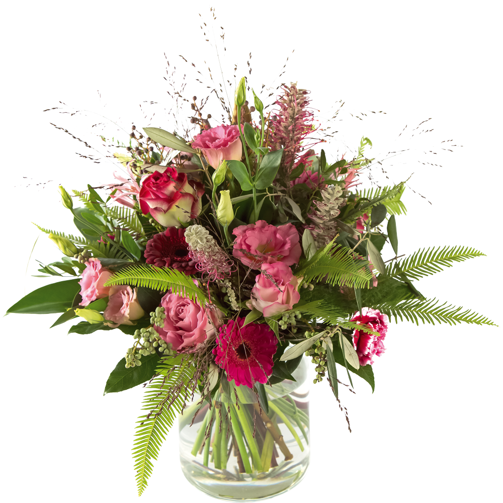 Steek dierbaren een hart onder de riem: laat bij hen dit ronde sympathieboeket met roze bloemen bezorgen, excl. ondergrond, vaas en lint.