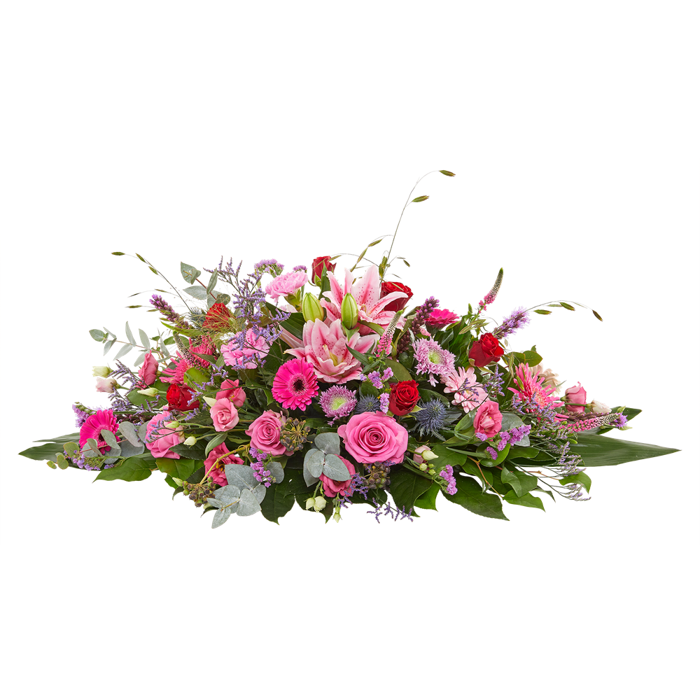 Het ovale rouwstuk 'Warme kus' in warme kleuren is een compact en tijdloos bloemstuk, perfect voor een mooi en waardig afscheid. Dit klassiek-moderne bloemstuk komt zowel compact als luchtig prachtig tot zijn recht. Beschikbaar in verschillende groottes: 60cm (klein), 80cm (middel) of 100cm (groot). Bij elke bestelling met rouwwerk wordt zorgvuldig gecontroleerd en samengesteld, zodat het rouwstuk volledig naar wens is. De rouwbloemen worden geleverd op de gewenste locatie, zoals een kerk, rouwcentrum of crematorium. Je hoeft het rouwboeket niet zelf op te halen; de bloemist zorgt voor een tijdige bezorging en optimale kwaliteit van de bloemen. Een geruststellende gedachte in moeilijke tijden.