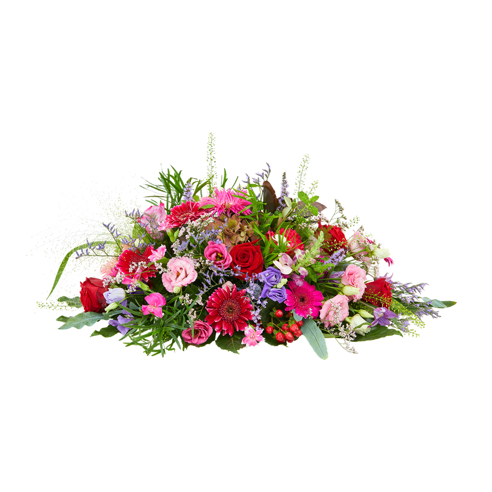 Zachtaardig: Romantisch Bloemstuk voor Een Warme Uitstraling | In Verschillende Maten Beschikbaar Het ovale bloemstuk Zachtaardig is perfect om liefde te uiten door de zorgvuldig gekozen bloemen. Dit tijdloze en compacte bloemstuk barst van kleur en warmte. Het klassiek-moderne ovaal rouwstuk combineert compactheid met luchtigheid, waardoor de bloemen prachtig tot hun recht komen. Kies uit de maten 60cm (klein), 80cm (middel) of 100cm (groot). Bij ons wordt jouw bestelling met rouwbloemen persoonlijk en met zorg gecontroleerd. Zo garanderen wij dat het rouwstuk geheel naar wens wordt samengesteld. Het rouwboeket wordt op de gewenste locatie bezorgd, of dit nu bij een kerk, rouwcentrum of crematorium is. Je hoeft zelf niet naar de bloemist te gaan, wij zorgen ervoor dat de bloemen op het juiste moment arriveren en optimaal bloeien. Een geruststellende gedachte, vooral in moeilijke tijden.